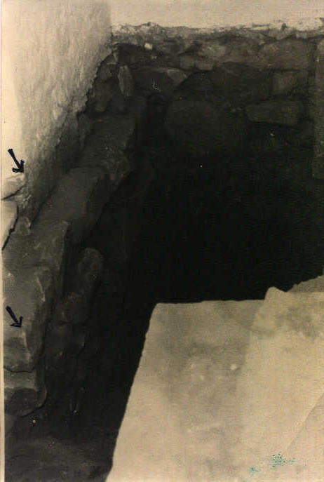 tabernakulum, na tle całej ściany remontowanej i klamrowanej w 1890 r., wyróżnia